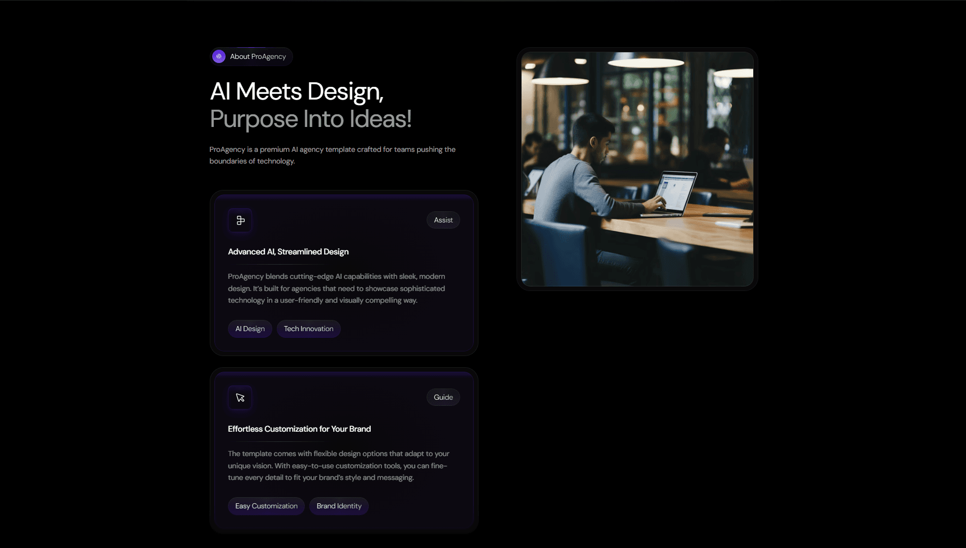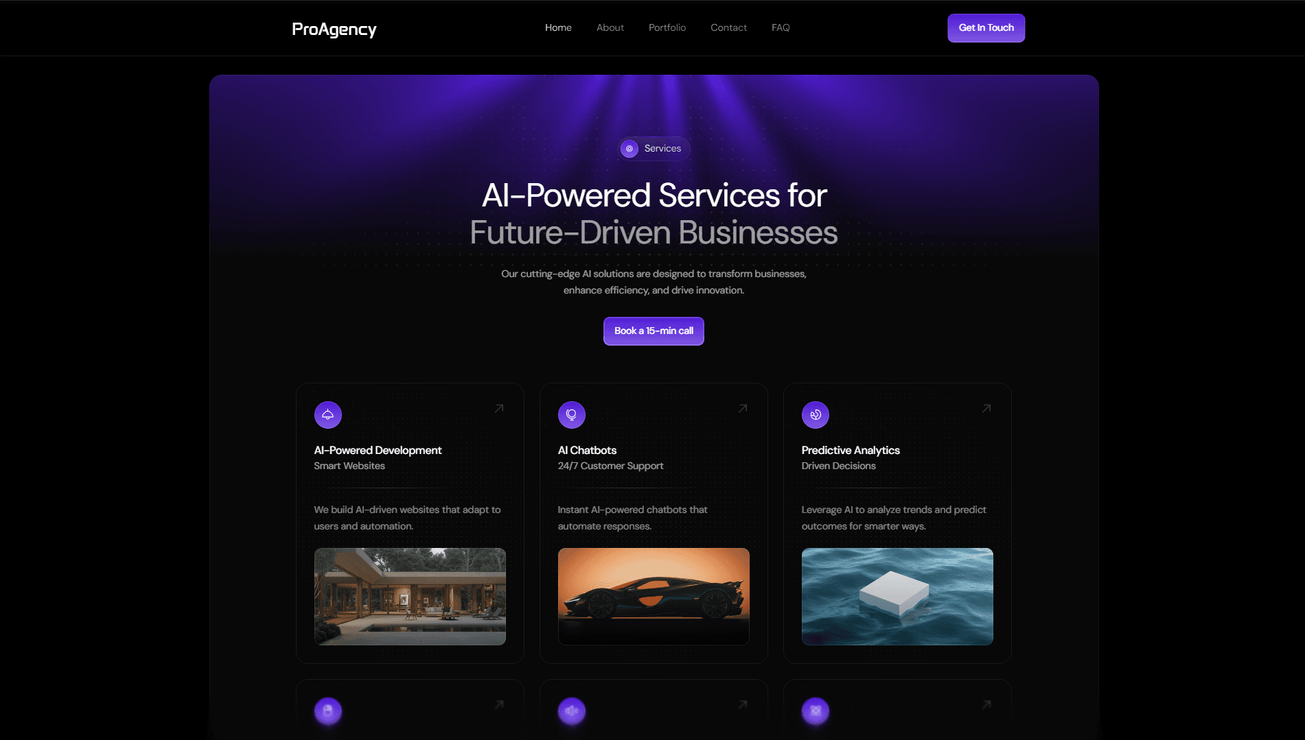Die KI‑Agentur‑Website wurde als Konzeptprojekt entwickelt, um KI‑Dienstleistungen verständlich, modern und professionell darzustellen. Der Fokus liegt auf einer klaren Struktur, einer zeitgemäßen Tech‑Ästhetik und einer verständlichen Erklärung komplexer Services.