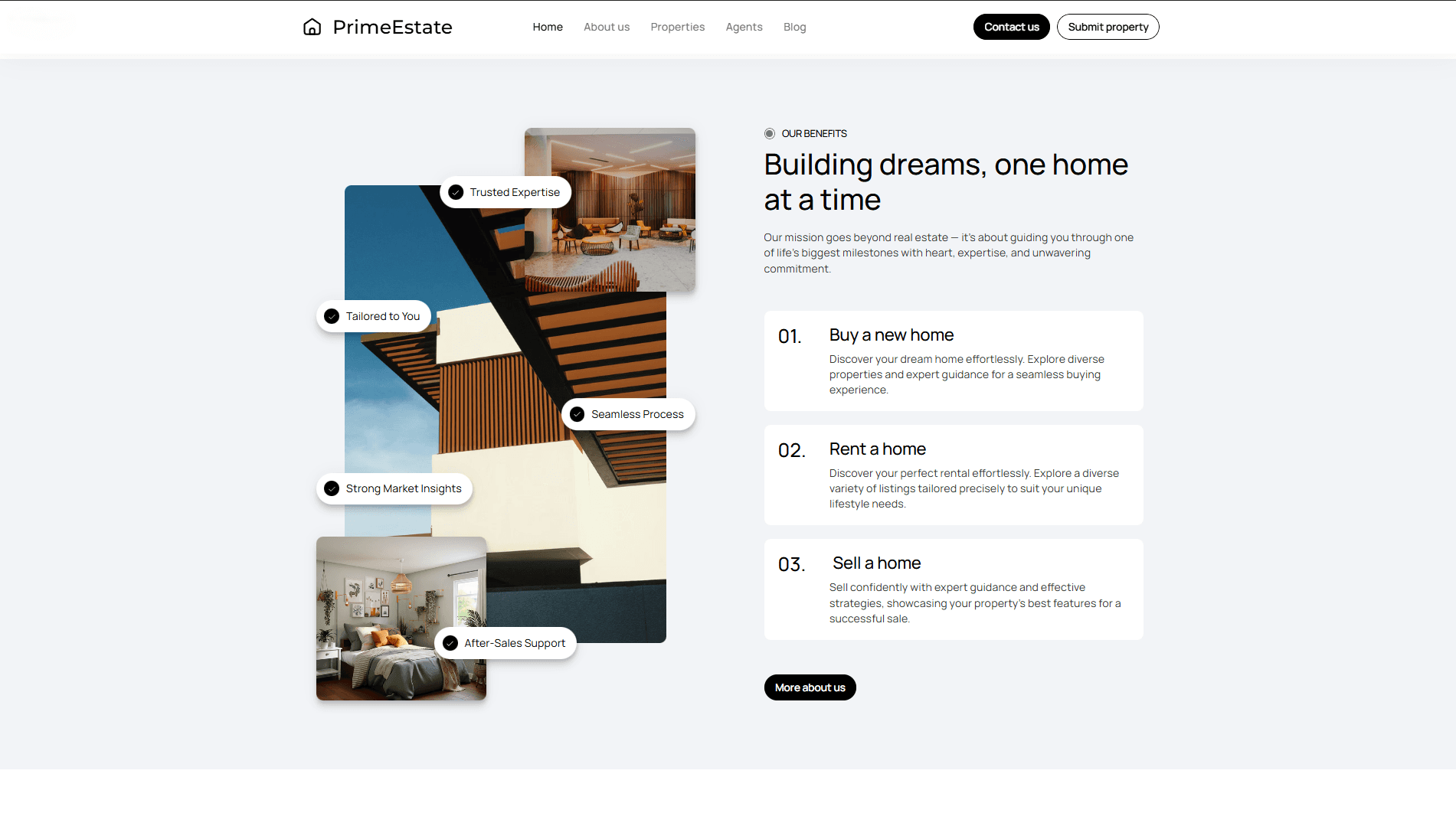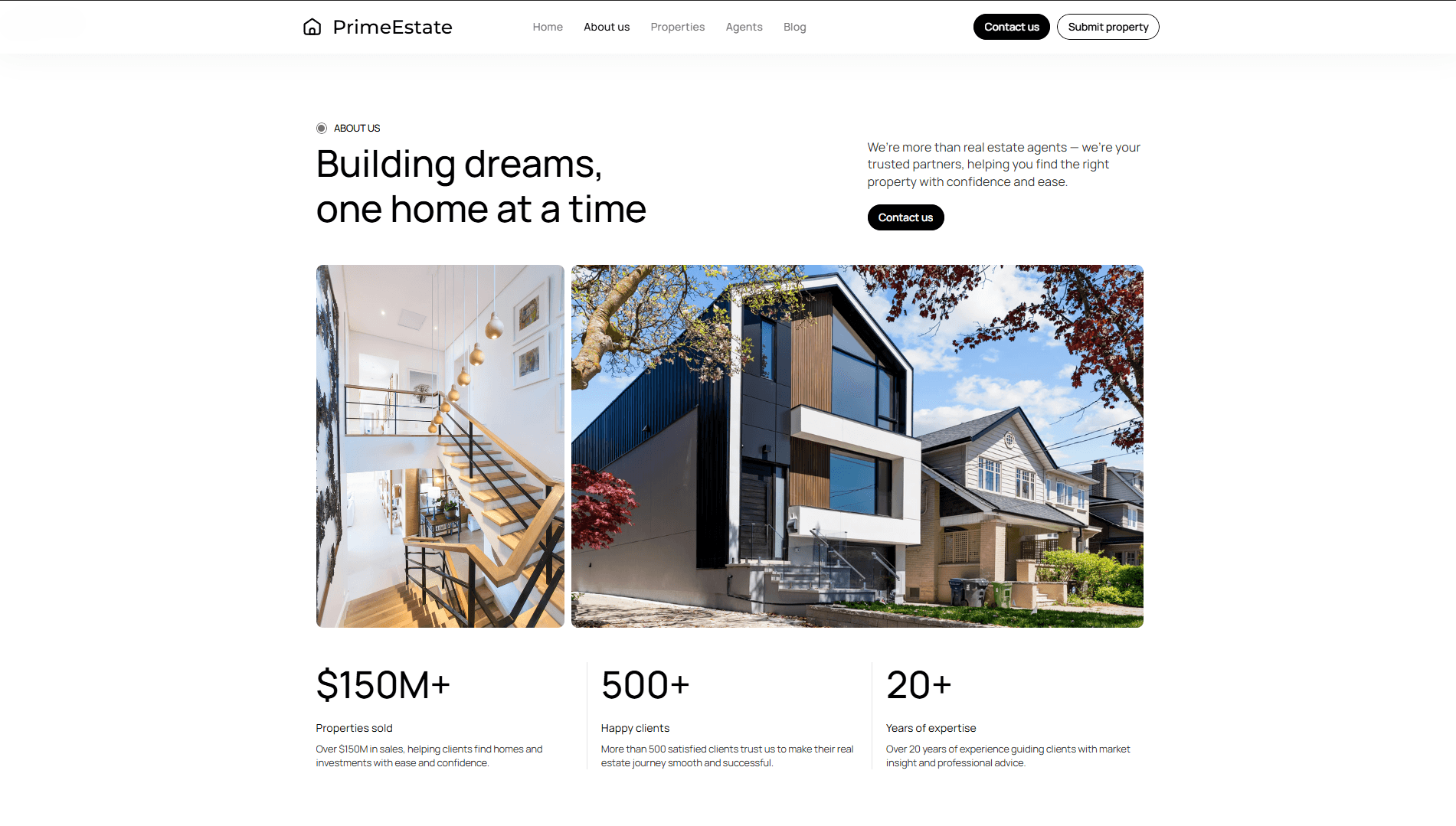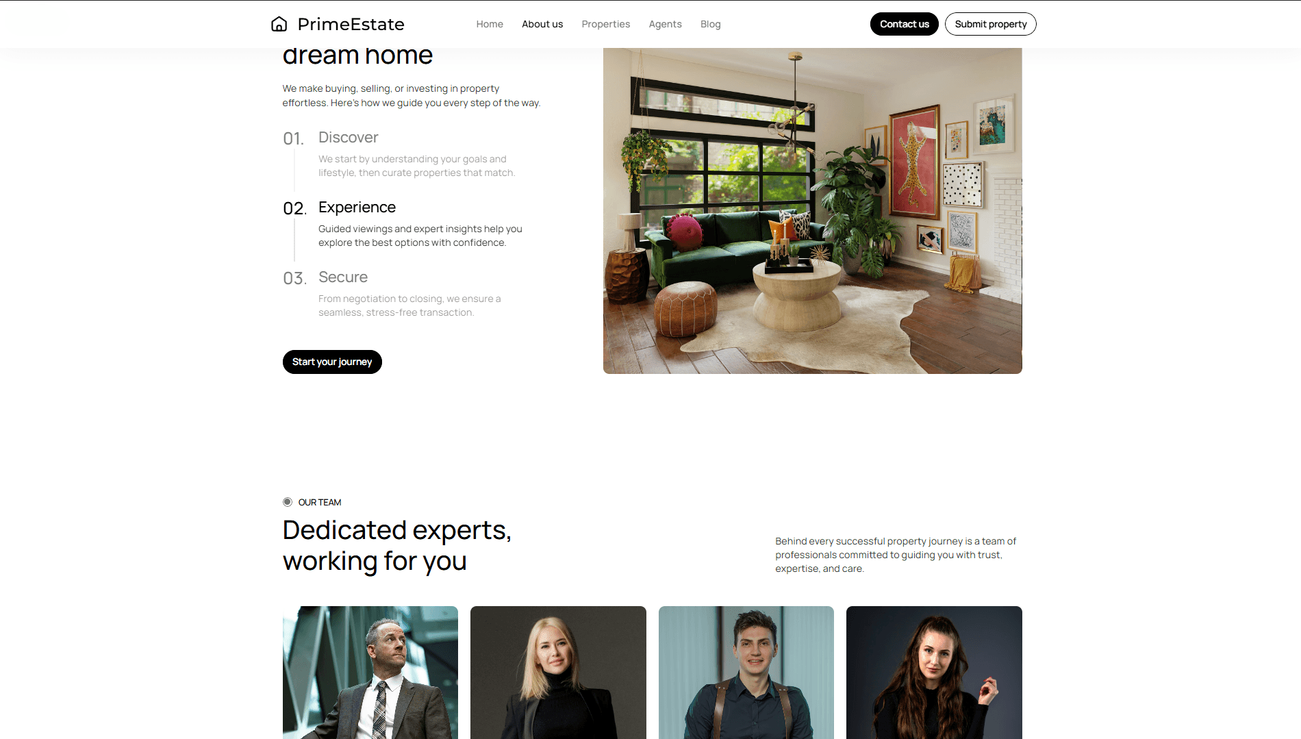 Der Fokus liegt auf einer klaren Struktur, starken Visuals und einer einfachen Nutzerführung, damit Interessenten schnell relevante Informationen finden und Kontakt aufnehmen können. Das moderne, seriöse Design ist vollständig mobil optimiert und eignet sich ideal für Makler und Immobilienunternehmen.