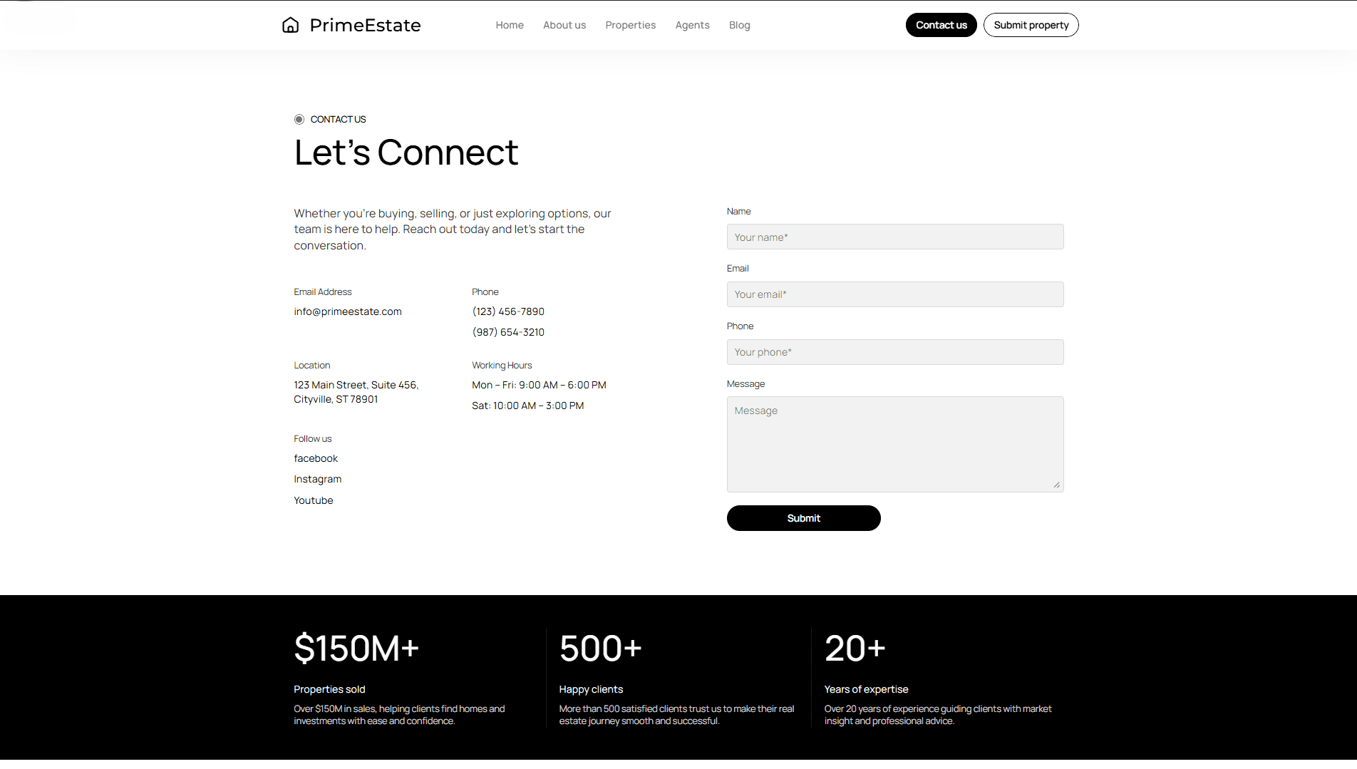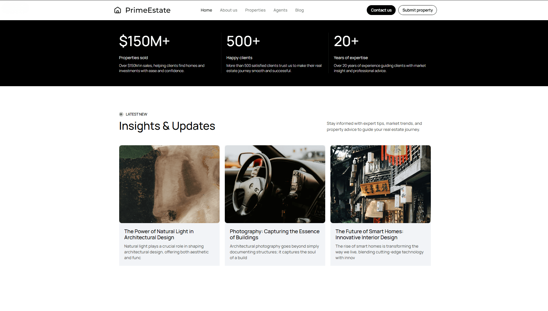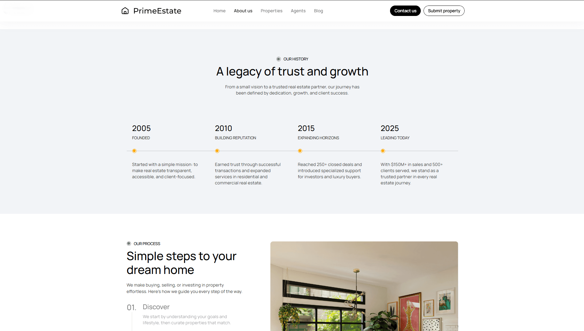 Der Fokus liegt auf einer klaren Struktur, starken Visuals und einer einfachen Nutzerführung, damit Interessenten schnell relevante Informationen finden und Kontakt aufnehmen können. Das moderne, seriöse Design ist vollständig mobil optimiert und eignet sich ideal für Makler und Immobilienunternehmen.