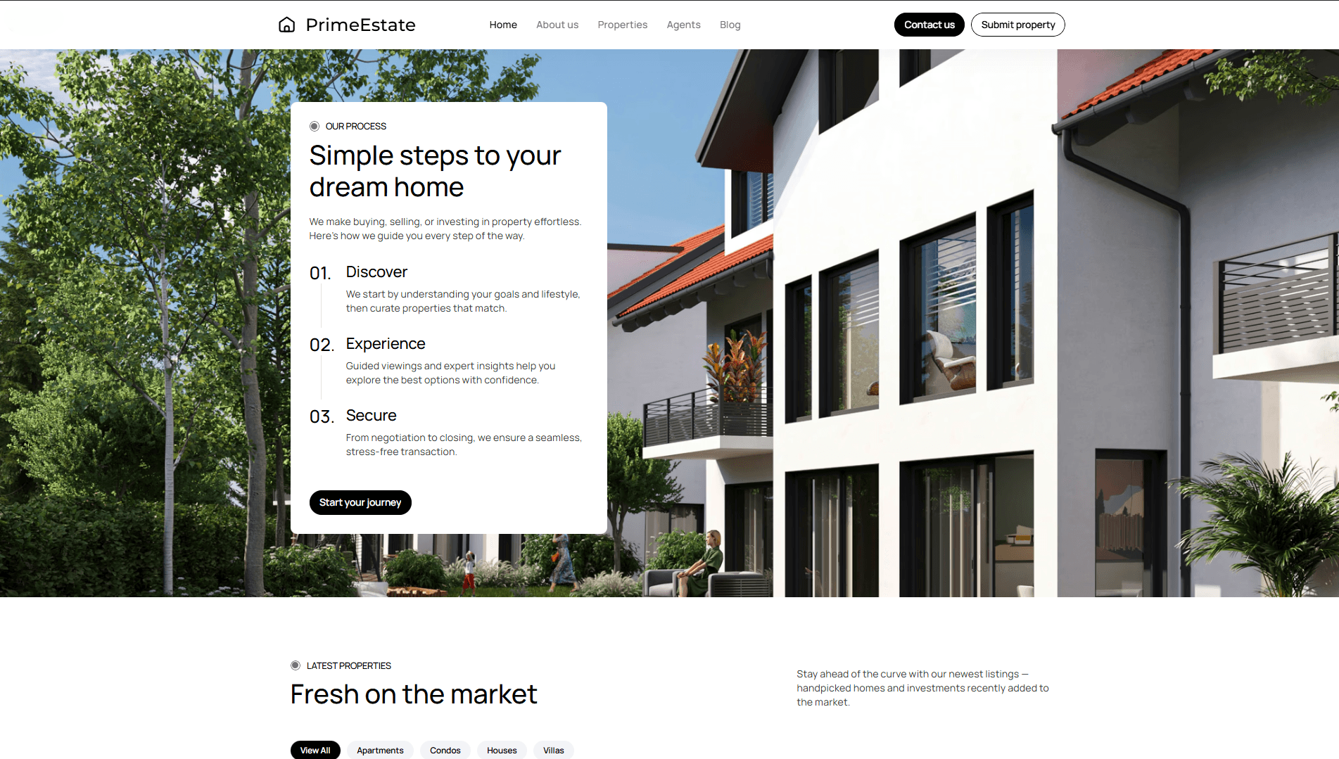 Diese Immobilien‑Website wurde als Konzeptprojekt entwickelt, um Immobilienangebote übersichtlich, hochwertig und vertrauenswürdig darzustellen.