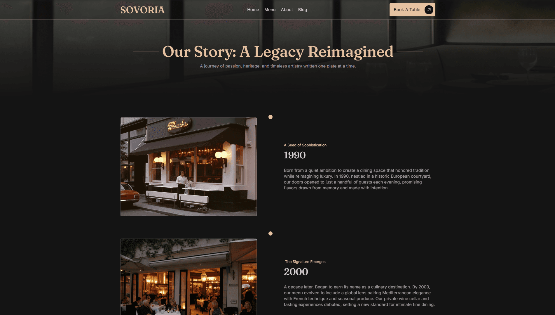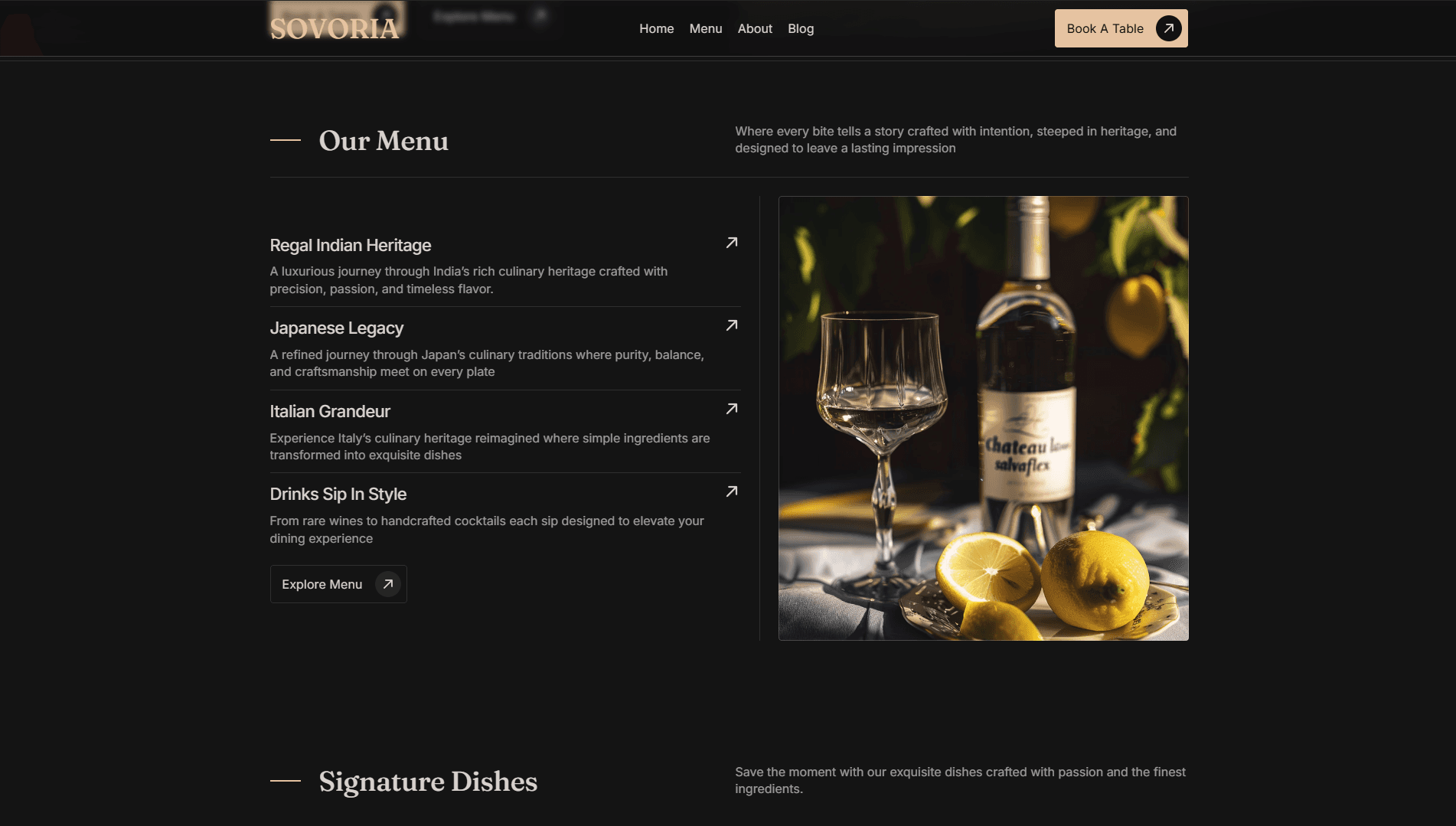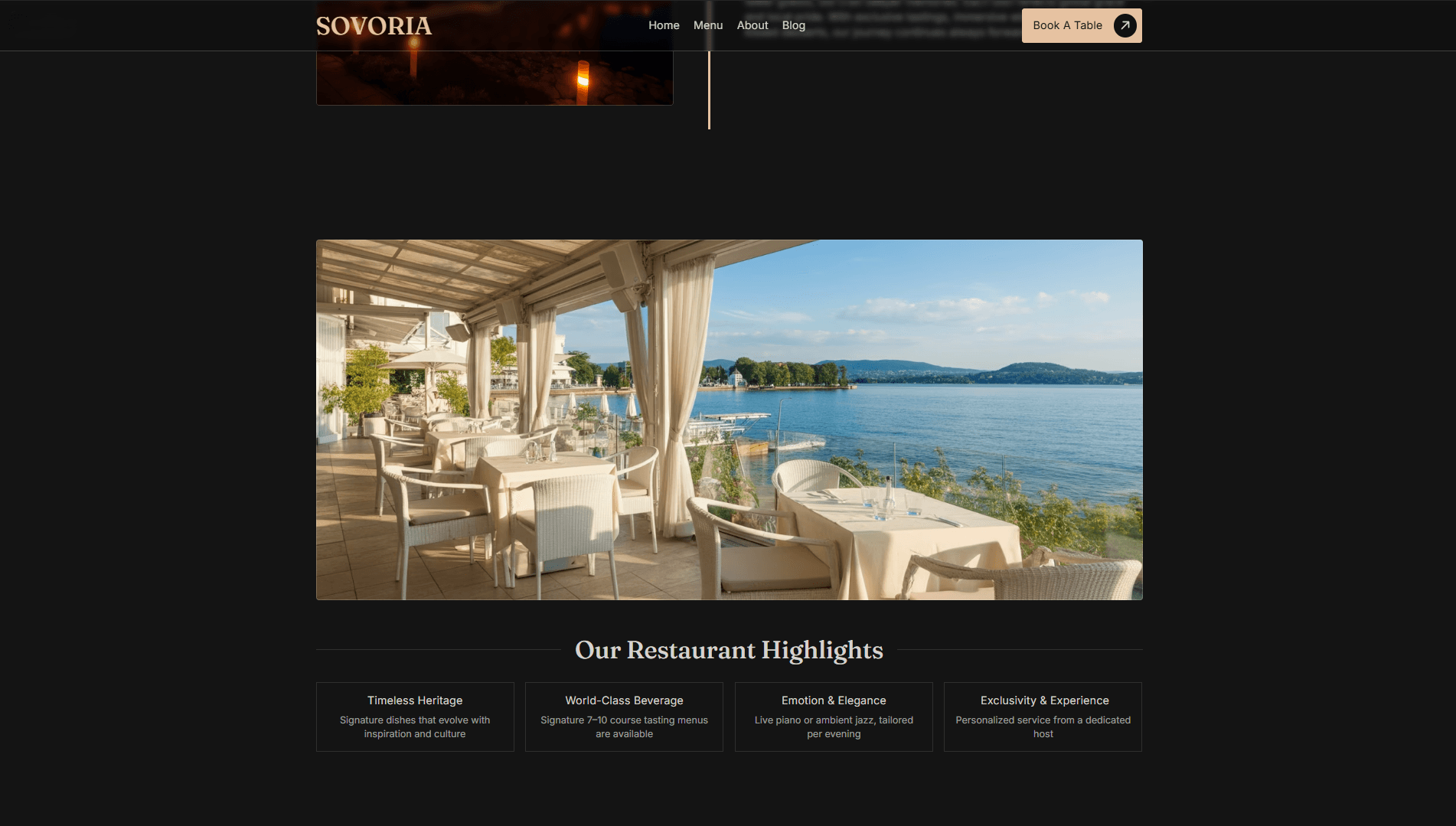 Konzept‑Website für ein Restaurant mit Fokus auf Atmosphäre, Menü und Reservierungen, sowie Design, Performance und Benutzerfreundlichkeit