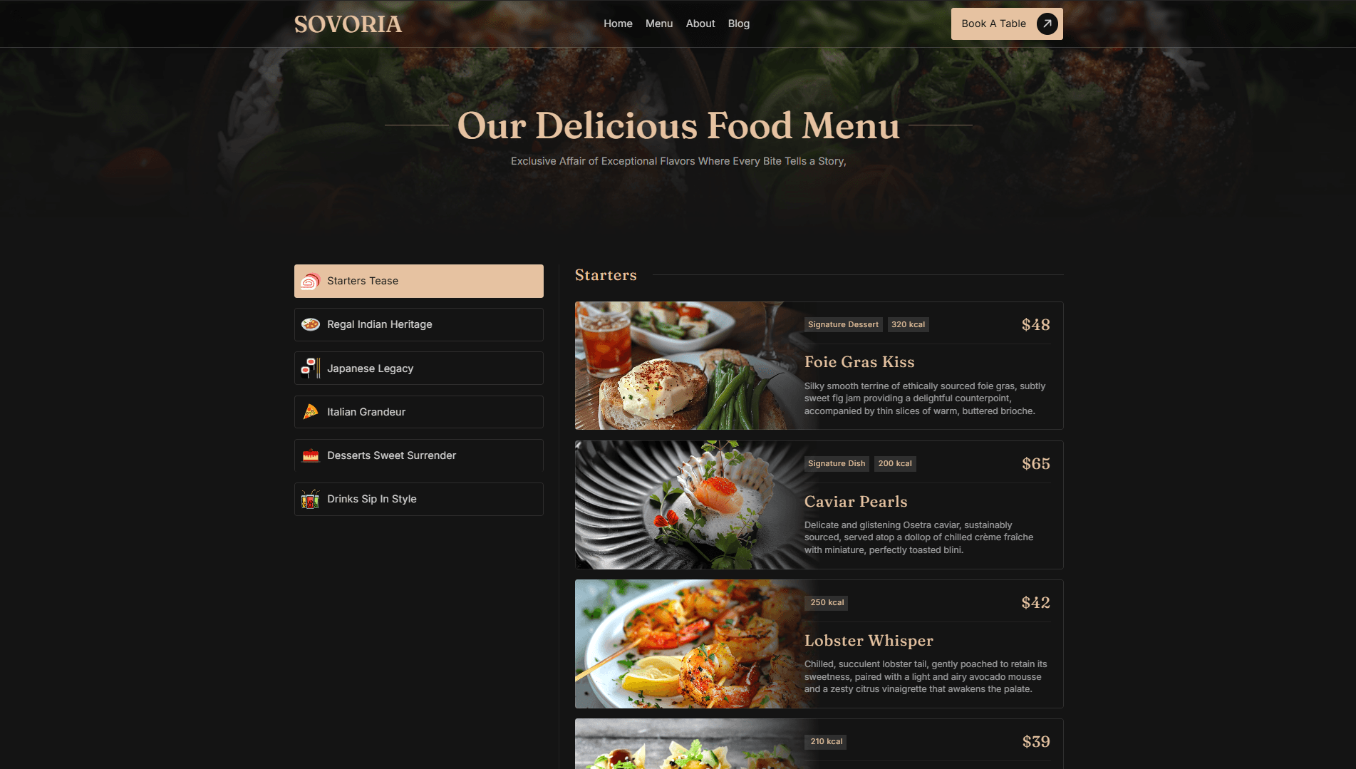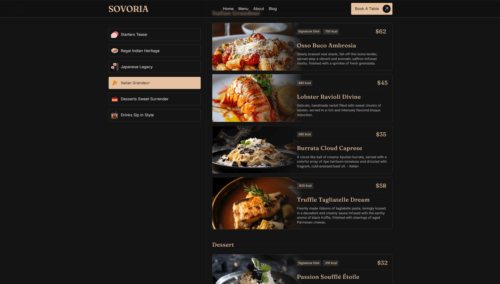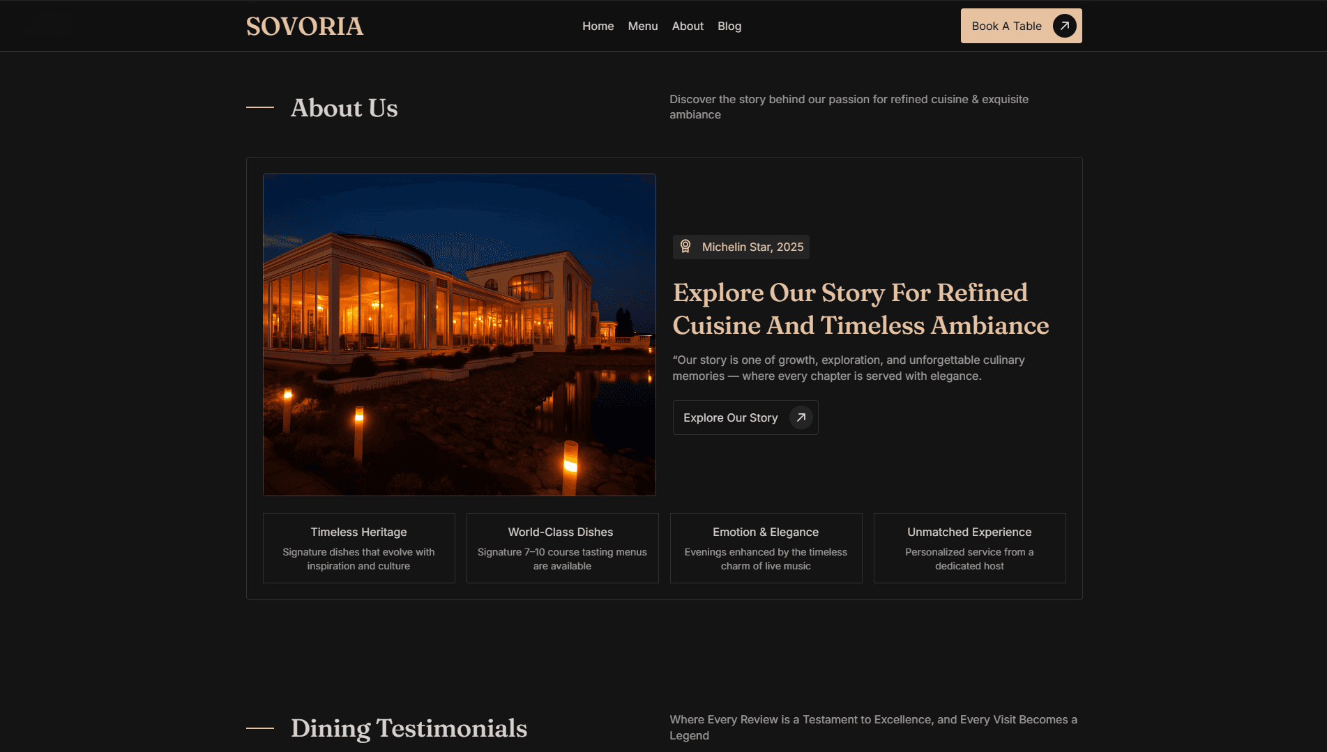 Konzept‑Website für ein Restaurant mit Fokus auf Atmosphäre, Menü und Reservierungen, sowie Design, Performance und Benutzerfreundlichkeit
